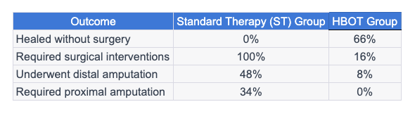 Diving into recent research, the table above narrates a compelling story. These statistics don't just spotlight HBOT's potential; they amplify the call for its inclusion in post-surgical recovery regimens.
