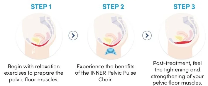 Pelvic chair treatment involves simply sitting fully clothed on the specialized chair throughout the session. There are no surgeries, injections, or recovery periods to interrupt your schedule. You’ll return to your normal daily activities immediately following each comfortable, non-invasive appointment at our clinic.